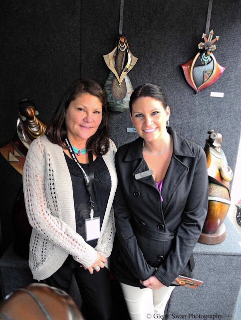 Kim (left) and Krystal (right) are two of our favorite people at the Indian Market in Santa Fe. Kim, of the Hopi tribe, creates amazing bronze sculptures, some of which are in the photo behind them. When we first met Kim, Crystal was just a little girl, and it's always a joy to visit with them and to see their new pieces. We just could not resist the one on the wall right between them.